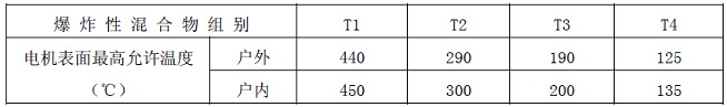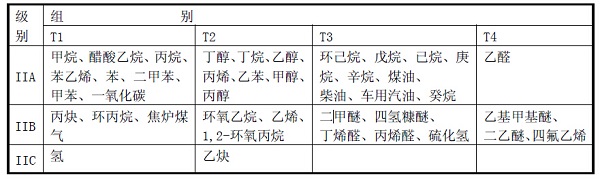 爆炸性混合物T1~T4溫度組別對(duì)應(yīng)表