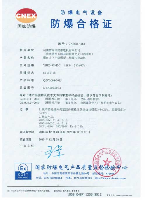a.有防爆標(biāo)志和防爆合格證編號(hào),并與YBK3防爆電機(jī)的使用場(chǎng)所要求一致;